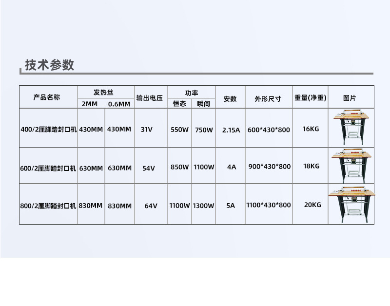 - 操作簡單:相較于一些自動(dòng)化程度較高的封口設(shè)備,腳踏封口機(jī)的操作非常容易上手。操作人員只需要將包裝材料放置在封口位置,踩下腳踏板即可完成封口,不需要復(fù)雜的培訓(xùn)。