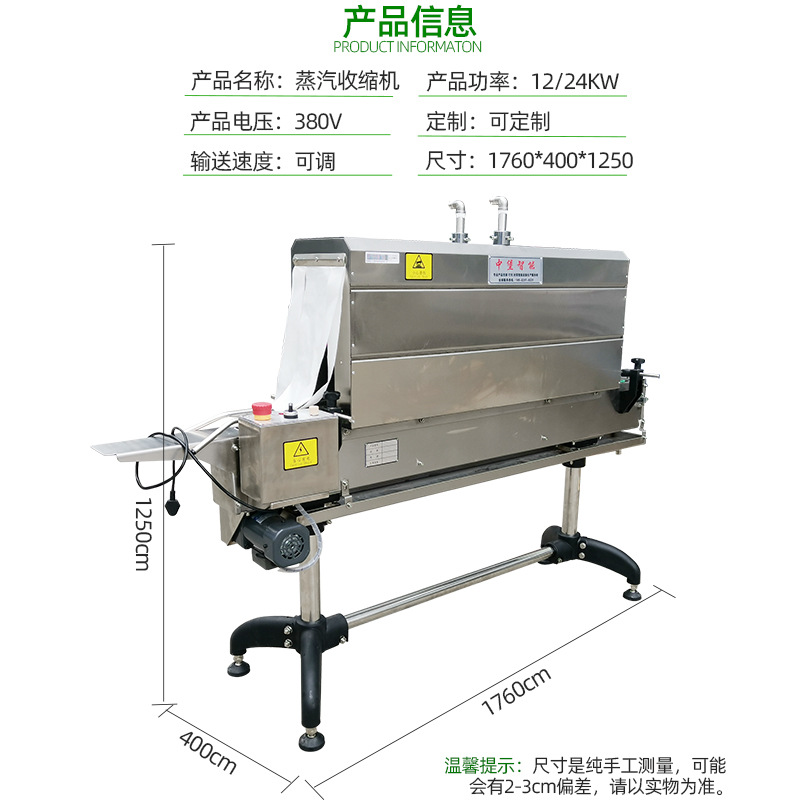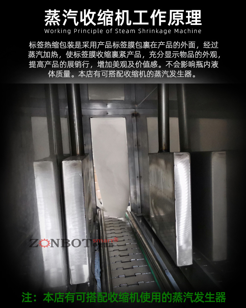 - 功能特點:可實現蒸汽收縮套標,適用于多種行業和產品的包裝,能對不同形狀和尺寸的物品進行套標收縮,自動化程度高,操作簡便,并且可根據客戶需求進行加工定制。