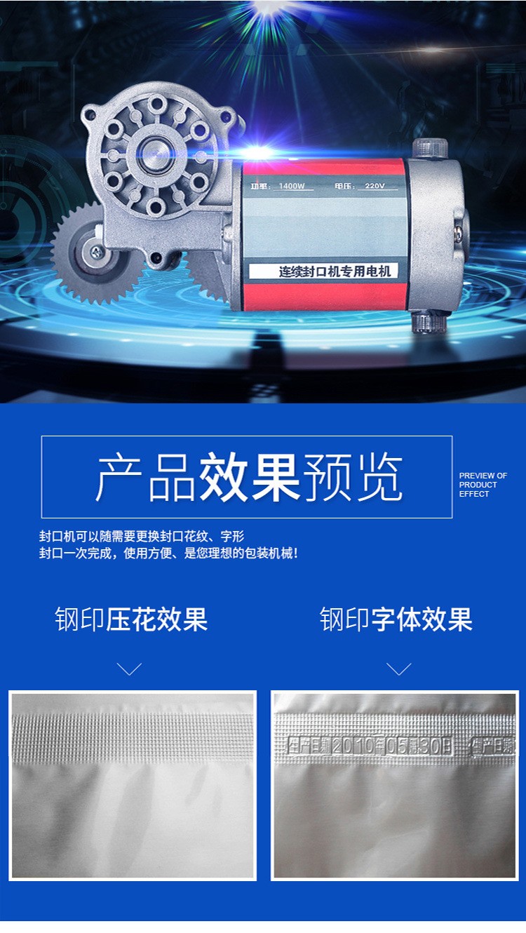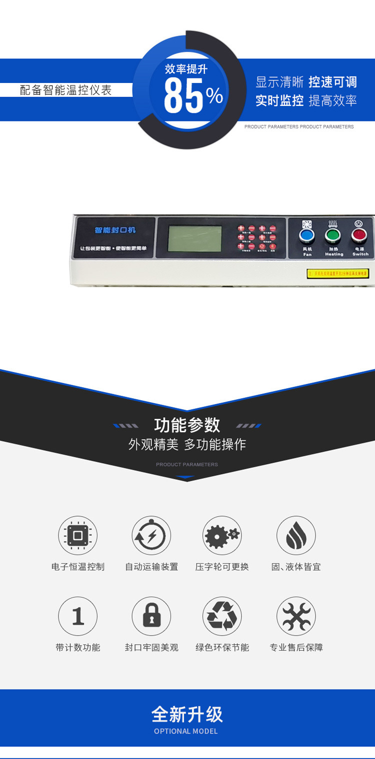 - 穩(wěn)定的封口質(zhì)量:憑借精準(zhǔn)的溫度、速度、壓力控制,不管是薄如蟬翼的塑料薄膜袋,還是稍厚的復(fù)合材質(zhì)包裝袋,都能保證封口牢固、整齊、美觀,封口一致性極佳,有效減少次品率。