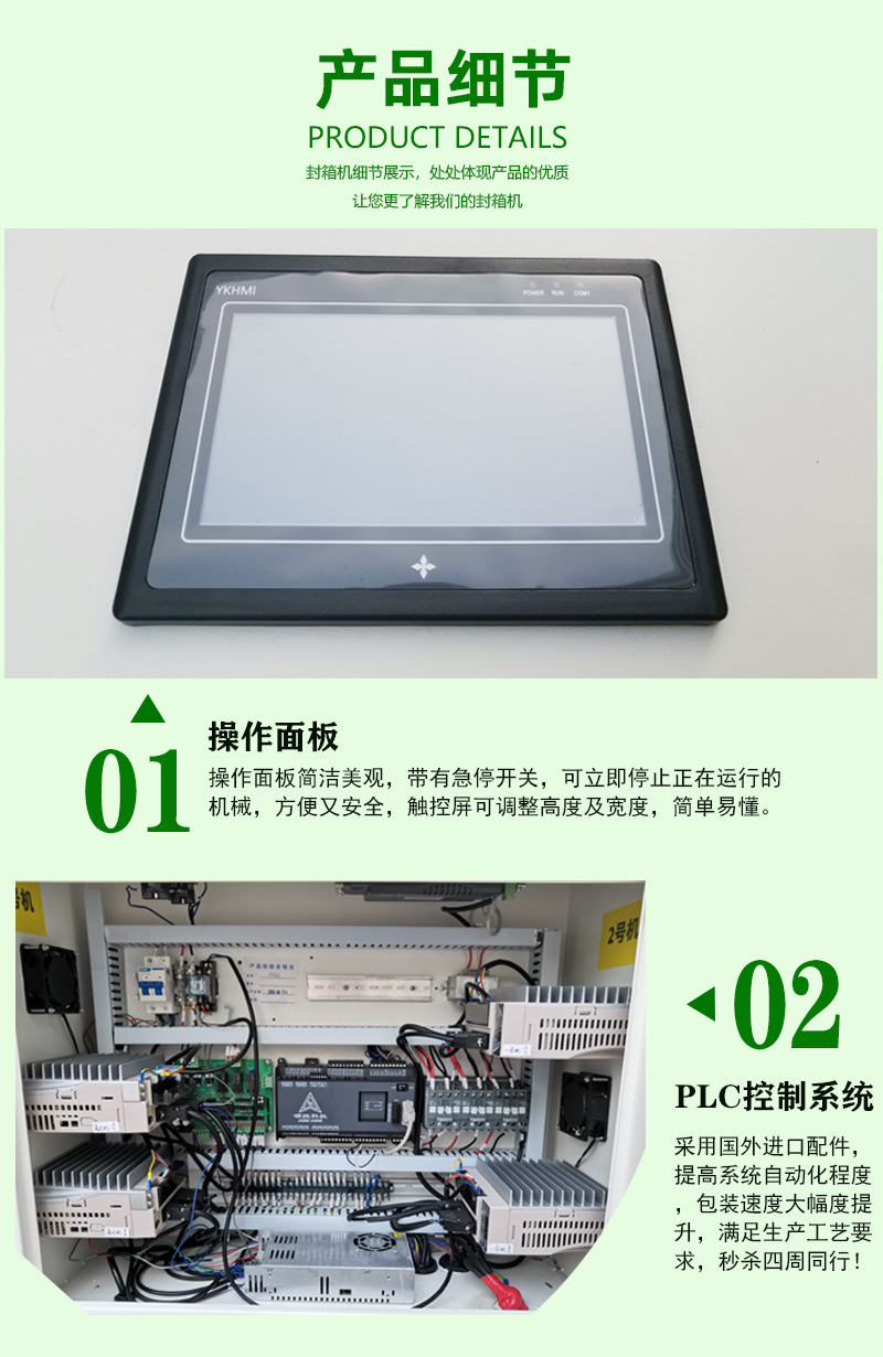 • 控制系統:一般采用 PLC 控制系統搭配操作面板,操作人員可以在面板上輕松設置輸送速度、封箱時間、加熱溫度等參數,實現精準控制。