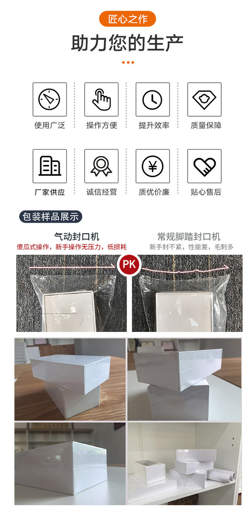- 檢查部件:每日開機前,檢查氣動系統的氣管是否有破損、漏氣現象,接頭是否松動;查看加熱元件是否有損壞、變形,加熱絲是否斷裂;檢查封口模具是否有磨損、變形或損壞,如有問題及時更換或修復,避免影響封口質量和設備運行。
