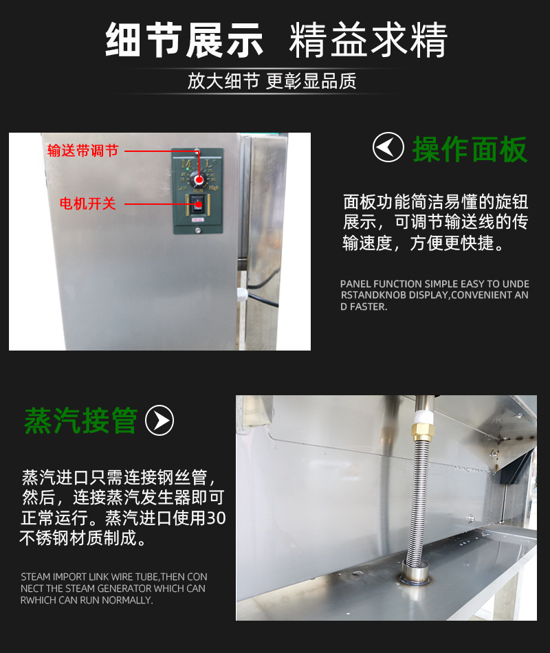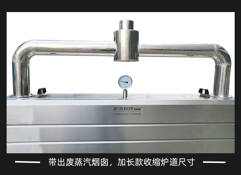 其工作原理是利用蒸汽的高溫和熱能,對覆蓋在產品外的收縮膜進行加熱。當收縮膜受熱達到一定溫度時,其分子結構發生變化,從而產生收縮現象,緊緊包裹住產品。