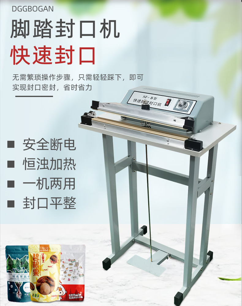 腳踏封口機是一種理想的封口設備,?適用于各種塑料袋薄膜的封口及制袋。?它特別適用于醫(yī)藥、?農藥、?食品、?日化、?潤滑油等行業(yè)的鋁箔袋、?塑料袋、?復合袋的封口。?這種設備利用電氣脈沖技術,?能夠顯著縮短封口時間,?從原來的2-4秒縮短至0.2秒,?具有投資少、?效益高、?封口長度長、?操作簡單等特點。?因此,?腳踏封口機被廣泛應用于食品、?醫(yī)藥、?土特產、?電器軟件、?工廠、?商店、?服務行業(yè)等領域,?成為這些行業(yè)中不可或缺的封口設備