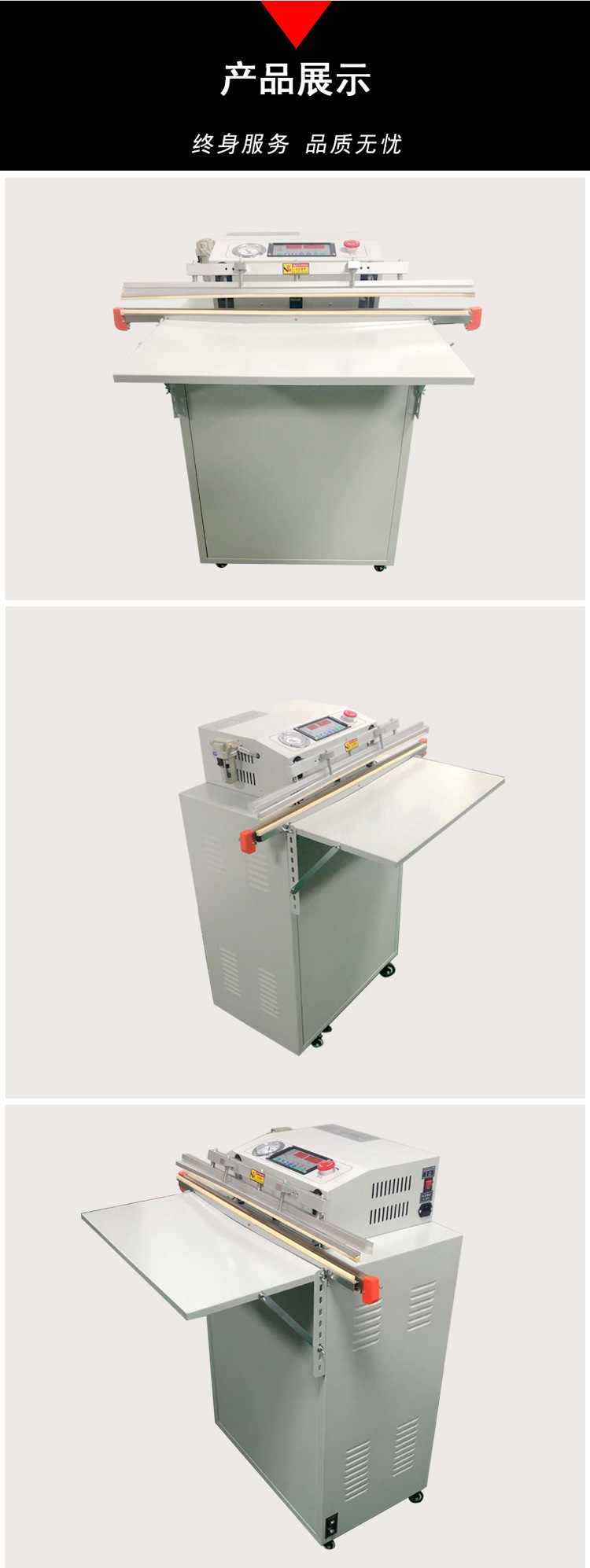 外抽真空包裝機(jī)通過抽氣嘴放入被包裝物的包裝袋內(nèi),?抽空空氣后完成封口,?實(shí)現(xiàn)了抽真空包裝的全自動化。?這種機(jī)器采用了國際先進(jìn)的控制技術(shù),?具有自動定型包裝袋、?抽真空等功能,?從而使產(chǎn)品具有外觀美觀、?保鮮、?防變質(zhì)和延長儲存時(shí)間等特點(diǎn)。?外抽式真空機(jī)特別適用于食品、?藥物、?土特產(chǎn)、?電子元件、?服裝等進(jìn)行真空、?封口包裝,?不受包裝物大小及體積的限制,?任意進(jìn)行真空包裝。?其適用范圍廣泛,?經(jīng)濟(jì)效益高,?使用方便,?能夠有效地防止物料的迅速氧化和抑制好氧性細(xì)菌的繁殖所引起的物料腐敗和變質(zhì)。?