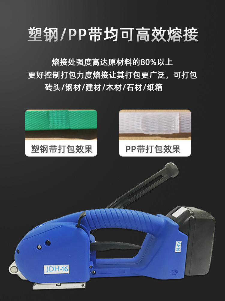 中堡半自動(dòng)塑鋼帶免扣打包機(jī)捆扎收緊一體機(jī)熱熔電動(dòng)打包PP塑料帶