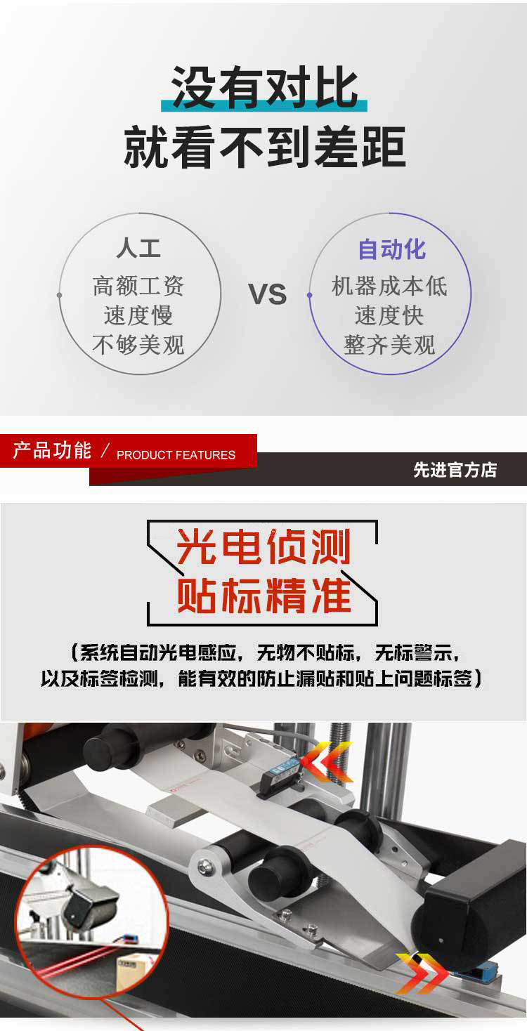 適用制藥、食品、輕工、日化等行業的圓形塑料瓶、玻璃瓶等或類似物體的貼標。該機能自動完成分瓶、送標帶同步分離標簽,貼標和自動打印批號日期,字跡清晰