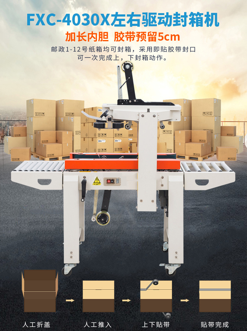 FXC-4030封箱機+ALB-190平面貼標機組合機日均一萬單